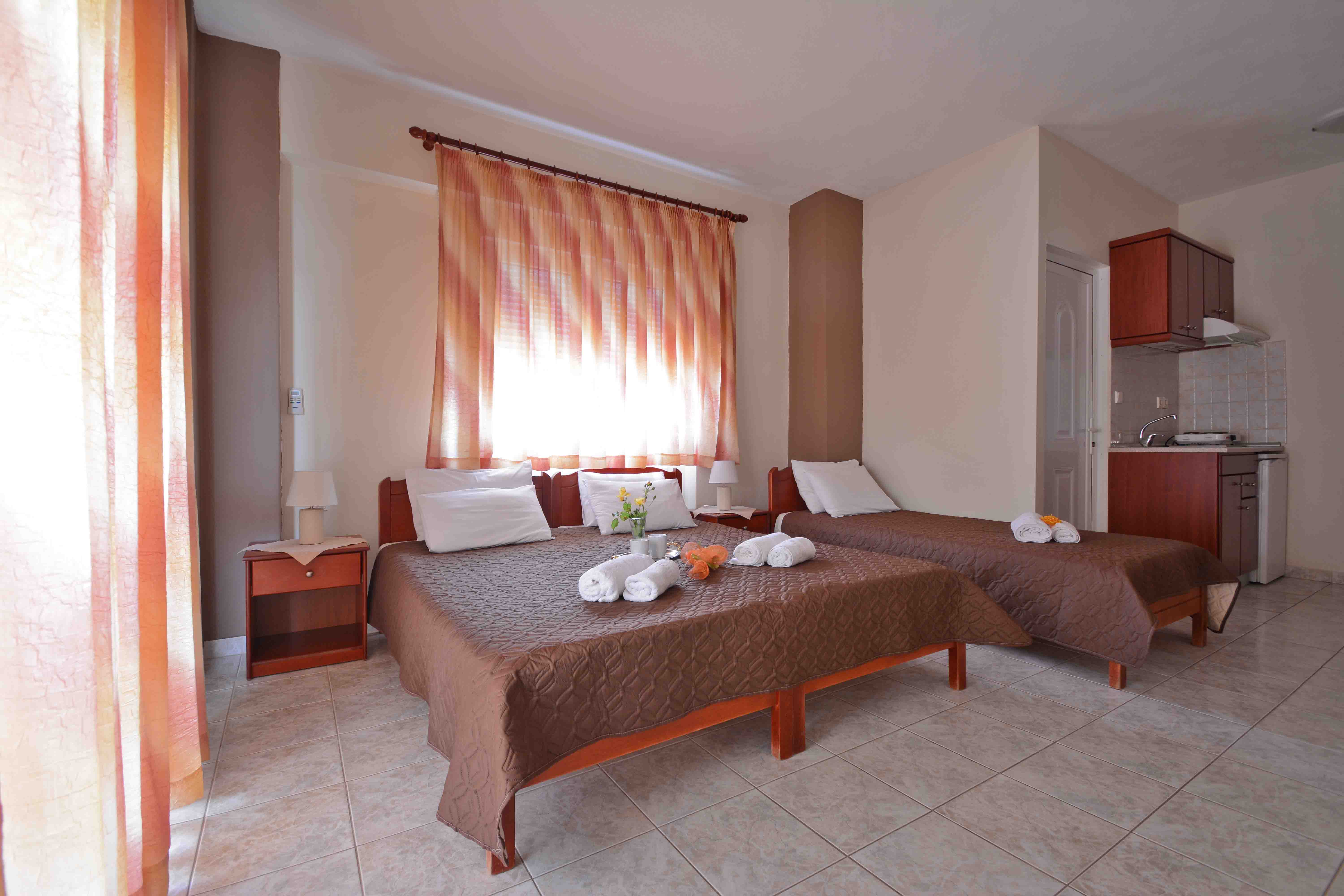 "Charikleia" welcomes you in Leptokaria and offers you a pleasant stay in a warm and friendly environmen, just 30 meters from the sea! Leptokarya Due to its location, Leptokarya will be for you an opportunity for long journeys and new experiences. Our region is closely connected with important pieces of history such as ancient Livithra, where the grave of Orpheus who is honored every year by the inhabitants of the region on Carnival Sunday where his death by the Maenads is revived. Also just 5 km from the coast you will find the Old hazelnuts dominated by the church of St. Nicholas and the church of the Holy Trinity. In the area it will also move you interest the magnetic field and will surely succumb to temptation and make a test. Just outside of Leptokarya in Litohoro area, you can start your own mountaineering adventure starting the hike up the Prionia, but also for the more brave right to the top of Olympus! In the region you can visit the canyon Enipeas a place of special beauty that will overwhelm you. Then for art lovers, the visitors have the opportunity to attend Dion-Olympus festival which held every year and within each one can observe ancient tragedy and newest theater and also to hear beloved Greek artists in concerts given in the imposing ancient theater. Finally, the visitors of the region should not depart from Pieria if not admire the castle of Platamonas and experience the vast beaches of Resources, a route that can be done pleasantly by bicycle!