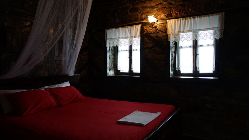 The village in the conservation area is only partly restored and gives the opportunity to feel the taste of traditional environment to its full and experience all 4 seasons of the Greek year. The Guesthouse consist of 4 large double bedroom rooms and a big breakfast and coffee area inside and outside.We accept reservations all over the year and we have extremely small prices for what you get. The price includes full breakfast and it is fitted for a family of four, with two adults and two kinds.Every room has its own parking lot, fireplace, television, and a unique view to the Mount Olympos and to the Aegean Sea.